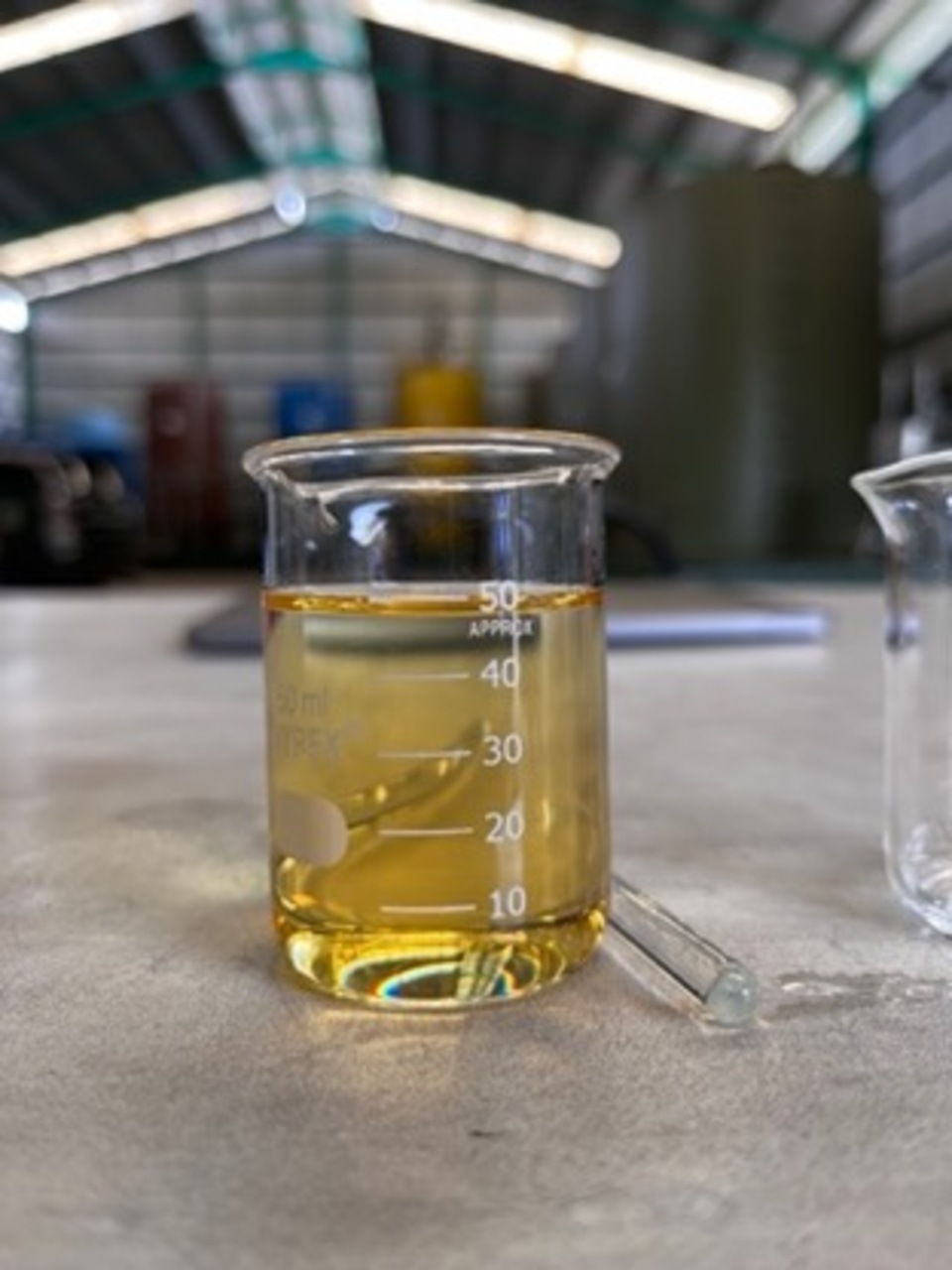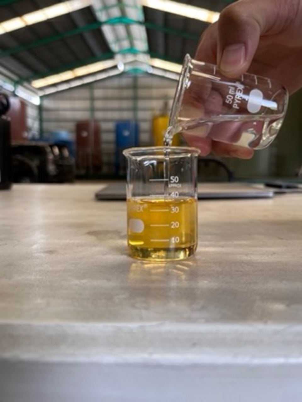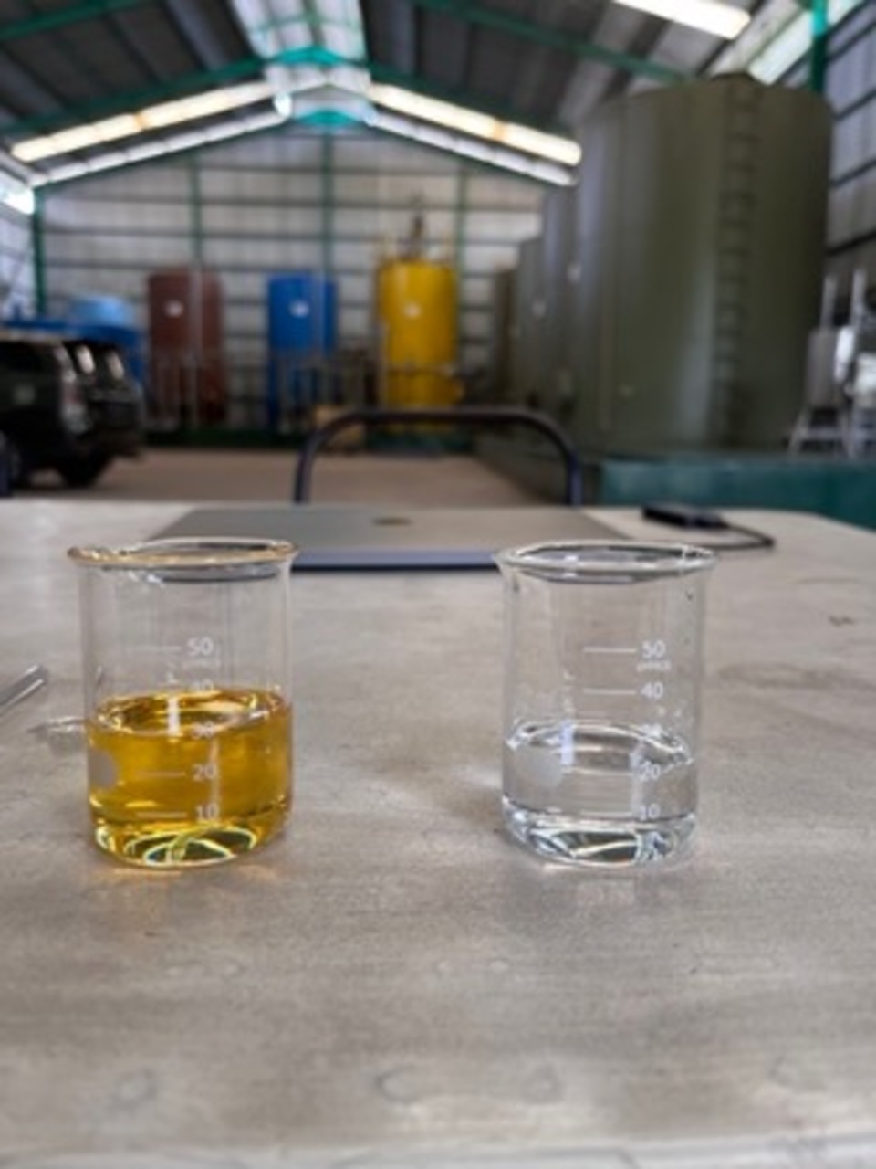 The clear one is our Hydrofuel. We just pour it and simply mix it with B30 diesel fuel.