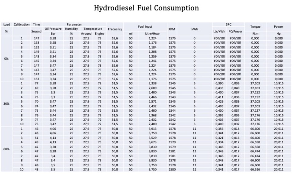 HYDRODIESEL TEST ON GENERATOR ENGINE 2000 KVA